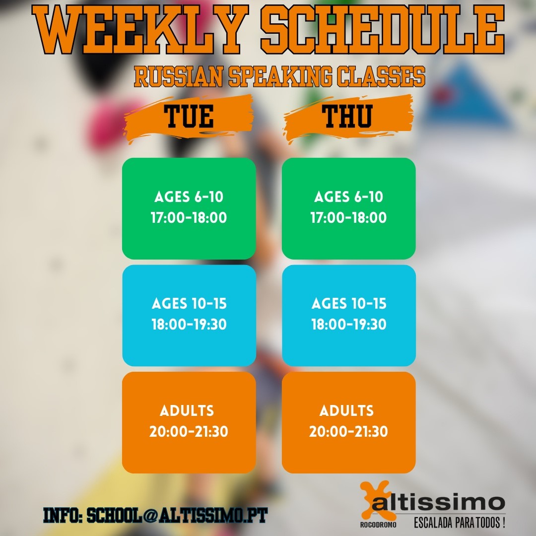 Weekly classes for adults and children, once a week, from September 23rd to the end of June. We offer classes for beginners and competitors. Visit our website or contact us for more information. Materials included. All our coaches speaks English & Portuguese, we also have classes in Russian. Subscribe here. (here for Russian classes)
